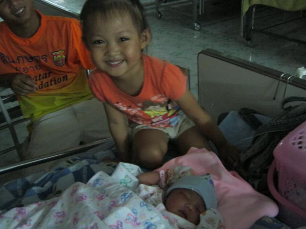 Jom and Ree's new baby Sairun with big sister Lydia
